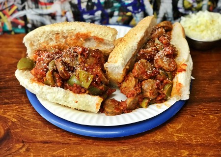 Marinara sauce, Italian link, with green peppers..